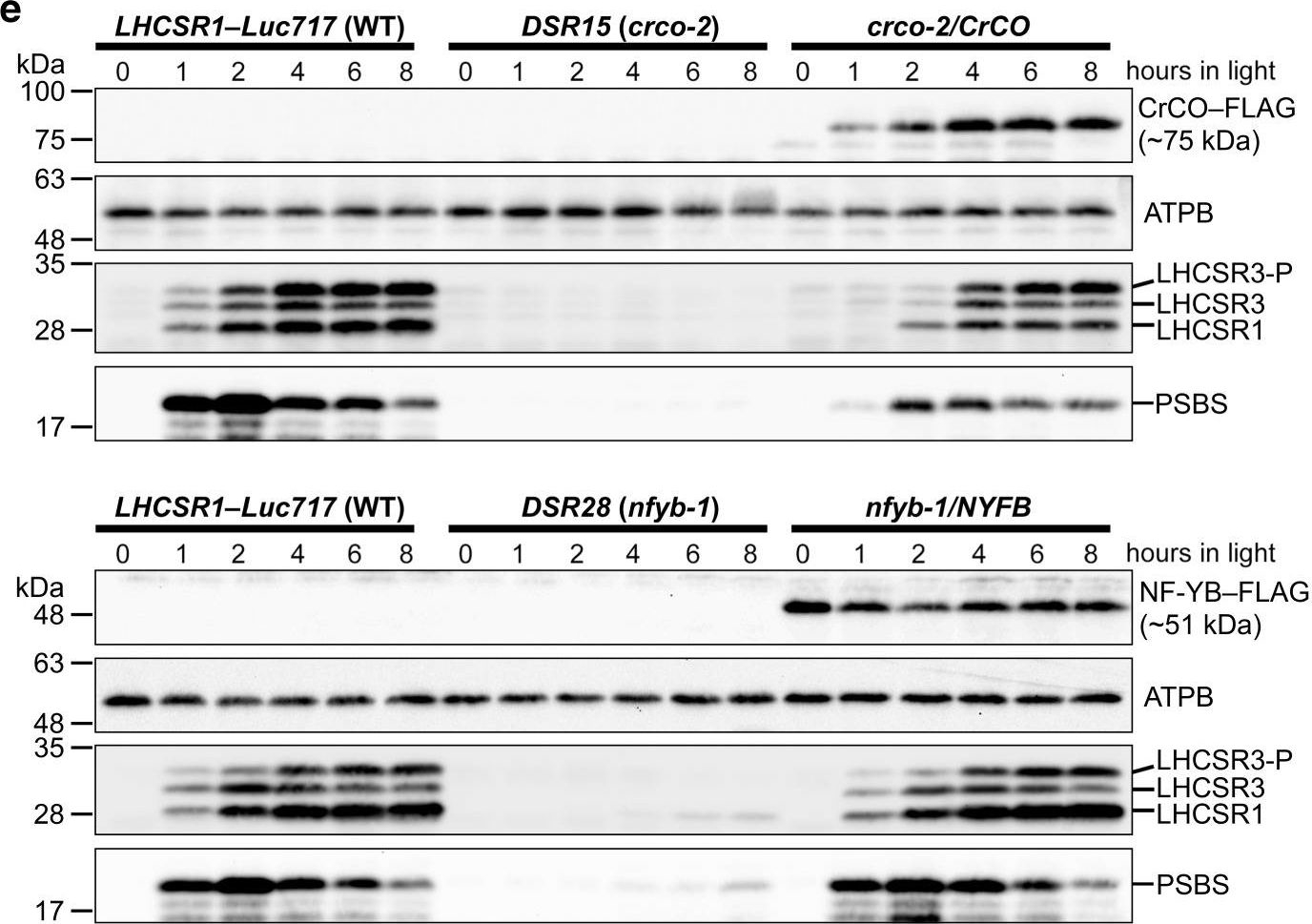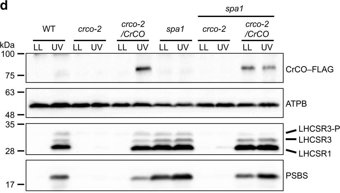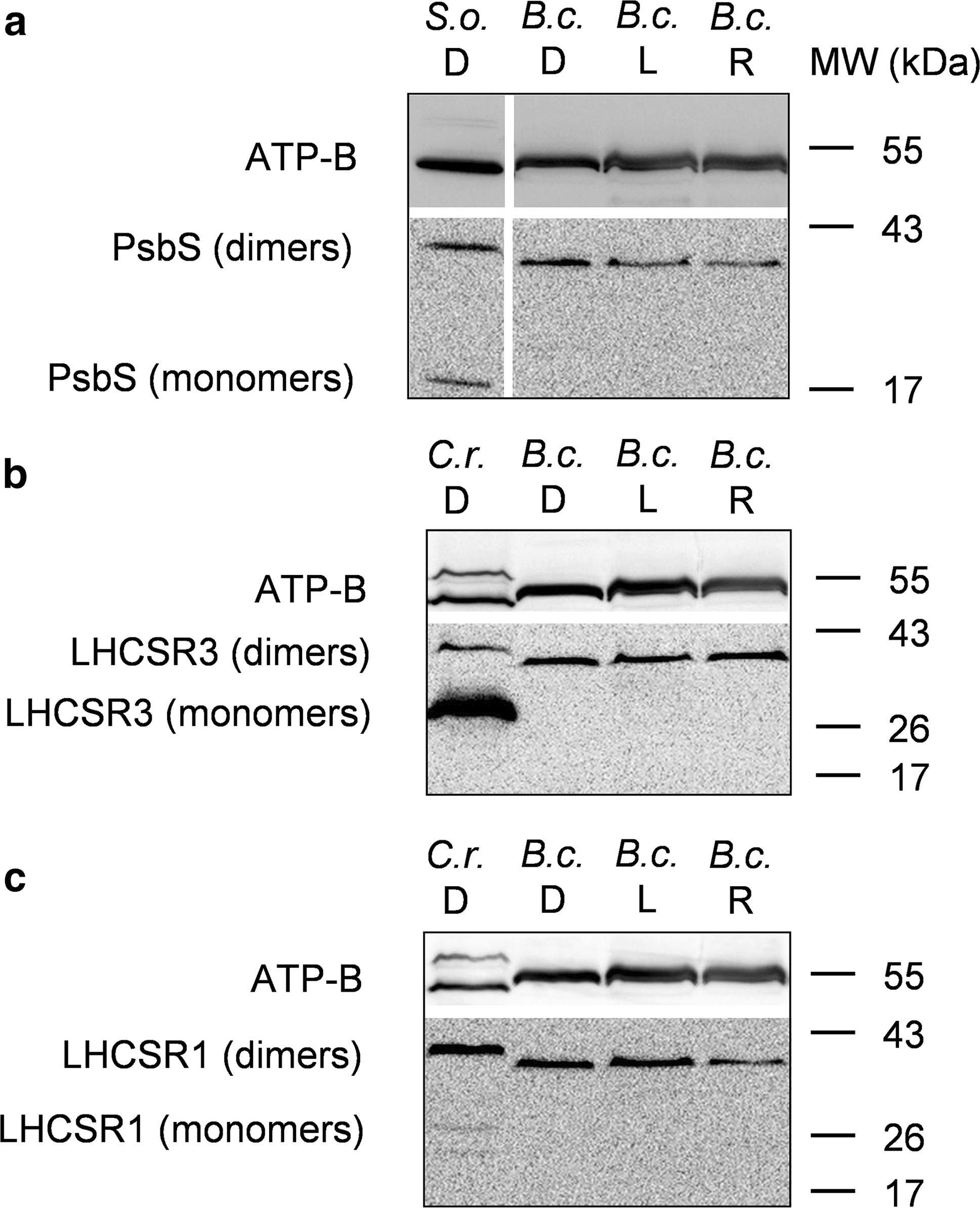 | Application examples: | Reactant: Oryza sativa (Asian rice) Application: Western Blotting Pudmed ID: 26552588 Journal: Sci Rep Figure Number: 6A Published Date: 2015-11-10 First Author: Dixit, G., Singh, A. P., et al. Impact Factor: 4.13 Open PublicationWestern blot analysis of selected candidate proteins (AtpB, 2Fe-2S, GLN2, Psb R, PRK, ALD) with their corresponding molecular weight in rice leaves during As stress under various S regimes (A); RuBisCo large subunit a band in coomassie blue staining (CBB) SDS gel served as a loading control (B), which used for normalization of detected proteins in densitometry studies (C) fold change indicated with respect of control samples. Reactant: Nicotiana tabacum (Common tobacco) Application: Western Blotting Pudmed ID: 28180288 Journal: J Exp Bot Figure Number: 5A Published Date: 2017-02-01 First Author: Schöttler, M. A., Thiele, W., et al. Impact Factor: 6.088 Open PublicationImmunoblot analysis of photosynthetic complex accumulation in wild-type tobacco and the two ?psaI lines grown under low, intermediate, and high-light conditions. Because the accumulation of most tested proteins was highest under high-light conditions, lanes one to three contain samples diluted to 25%, 50%, and a 100% sample of wild-type tobacco grown under high-light conditions, to allow for semi-quantitative determination of changes in protein abundance. Lanes four and five contain the two transplastomic lines grown at 1000 µE m?2 s?1. Lanes six to eight contain wild-type tobacco and the mutants grown at intermediate light intensities, and lanes nine to eleven contain samples grown at low light intensities. For PSII, the accumulation of the essential subunits PsbB (CP43) and PsbD (D2) and the LHCB1 antenna protein were determined, while for the cytochrome b6f complex, the accumulation of the essential redox-active subunits PetA (cytochrome f), PetB (cytochrome b6), and PETC (Rieske FeS protein) was tested. AtpB was probed as an essential subunit of the chloroplast ATP. For PSI, in addition to the three essential plastome-encoded subunits PsaA, PsaB, and PsaC, the accumulation of the nuclear-encoded subunits PSAD, PSAH, PSAK, PSAL, and PSAN and of the four LHCI proteins (LHCA1, LHCA2, LHCA3, LHCA4) was determined. Finally, we examined the accumulation of Ycf4, the chloroplast-encoded PSI-biogenesis factor encoded in the same operon as PsaI, and the nuclear-encoded assembly factor Y3IP1. Reactant: Algae Application: Western Blotting Pudmed ID: 29460179 Journal: Planta Figure Number: 7A,B,C Published Date: 2018-06-01 First Author: Giovagnetti, V., Han, G., et al. Impact Factor: 3.95 Open PublicationWestern blot analysis of PsbS and LHCSR proteins from dark-adapted (D, 30 min), light-treated (L, 2500 µmol photons m?2 s?1, 30 min) and post-dark-recovery chloroplasts (R, 1 h) isolated from B. corticulans. Samples were analysed by immunoblotting with an anti-PsbS (a), anti-LHCSR3 (b) and anti-LHCSR1 antibodies (c). Control samples are dark-adapted S. oleracea (a) and C. reinhardtii chloroplasts (b, c). Note that B. corticulans and S. oleracea samples have been probed against anti-PsbS antibody in the same membrane. The separation between lanes is only due to the presence of different samples between those presented of S. oleracea and B. corticulans (a). The ? subunit of ATP synthase (ATP-B) was used as loading control. 10 µg of Chl was loaded in each lane Reactant: Chlamydomonas reinhardtii (Green Alga) Application: Western Blotting Pudmed ID: 30808958 Journal: Sci Rep Figure Number: 2B Published Date: 2019-02-26 First Author: Tokutsu, R., Fujimura-Kamada, K., et al. Impact Factor: 4.13 Open PublicationLHCSR1 expression in isolated mutants following UV induction. (A) Gene expression analysis of LHCSR1 by RT-PCR. The CBLP gene was used as the housekeeping control. RNA and protein samples were collected after 1?hour of irradiation with UV. A 100-bp DNA ladder is shown. (B) Expression of the LHCSR1 protein was detected using specific antibodies, and the ATPB protein was used as the loading control. The protein samples were collected after 4?hours of irradiation with UV. Samples illustrated here are representative of three biological replicates. Reactant: Chlamydomonas reinhardtii (Green Alga) Application: Western Blotting Pudmed ID: 31506429 Journal: Nat Commun Figure Number: 1E Published Date: 2019-09-10 First Author: Tokutsu, R., Fujimura-Kamada, K., et al. Impact Factor: 13.783 Open PublicationCrCO and NF-YB are crucial for photoprotection. a The bleaching phenotypes of the reference strain (LHCSR1–Luc717) and the DSR mutants visualized in multiwell plates. Representative cell cultures treated with low light (LL; left wells) or high light (HL; right wells). Concentrations of the cultures were adjusted to 1.0?×? 107 cells/mL. b Chlorophyll content per cell after LL (closed bar) or HL (open bar) treatment of the cells shown in a. c Maximum quantum yield of photosystem II (Fv/Fm) during HL treatment. d qE quenching capability during HL treatment. e Immunoblot analysis of 3xFLAG-fused proteins (CrCO–FLAG and NF-YB–FLAG in crco-2/CrCO and nfyb-1/NFYB, respectively), LHCSR1, LHCSR3, and PSBS during HL treatment. ATPB protein levels are shown as the loading control. The experiments were performed three times with different biological samples (n?=?3 biological replicates; mean?± S.E.M); a representative experiment is shown in e Reactant: Chlamydomonas reinhardtii (Green Alga) Application: Western Blotting Pudmed ID: 31506429 Journal: Nat Commun Figure Number: 3D Published Date: 2019-09-10 First Author: Tokutsu, R., Fujimura-Kamada, K., et al. Impact Factor: 13.783 Open PublicationUVR8 interacts with COP1 and SPA1 to activate the CrCO-based transcriptional complex under UV irradiation. a Confocal images of UVR8–Venus–3xFLAG proteins in the DSR1–comp15 (uvr8/UVR8) strain. The cells were treated with UV for 30?min. Scale bars, 10?µm. b After 1?h of UV treatment, the cell