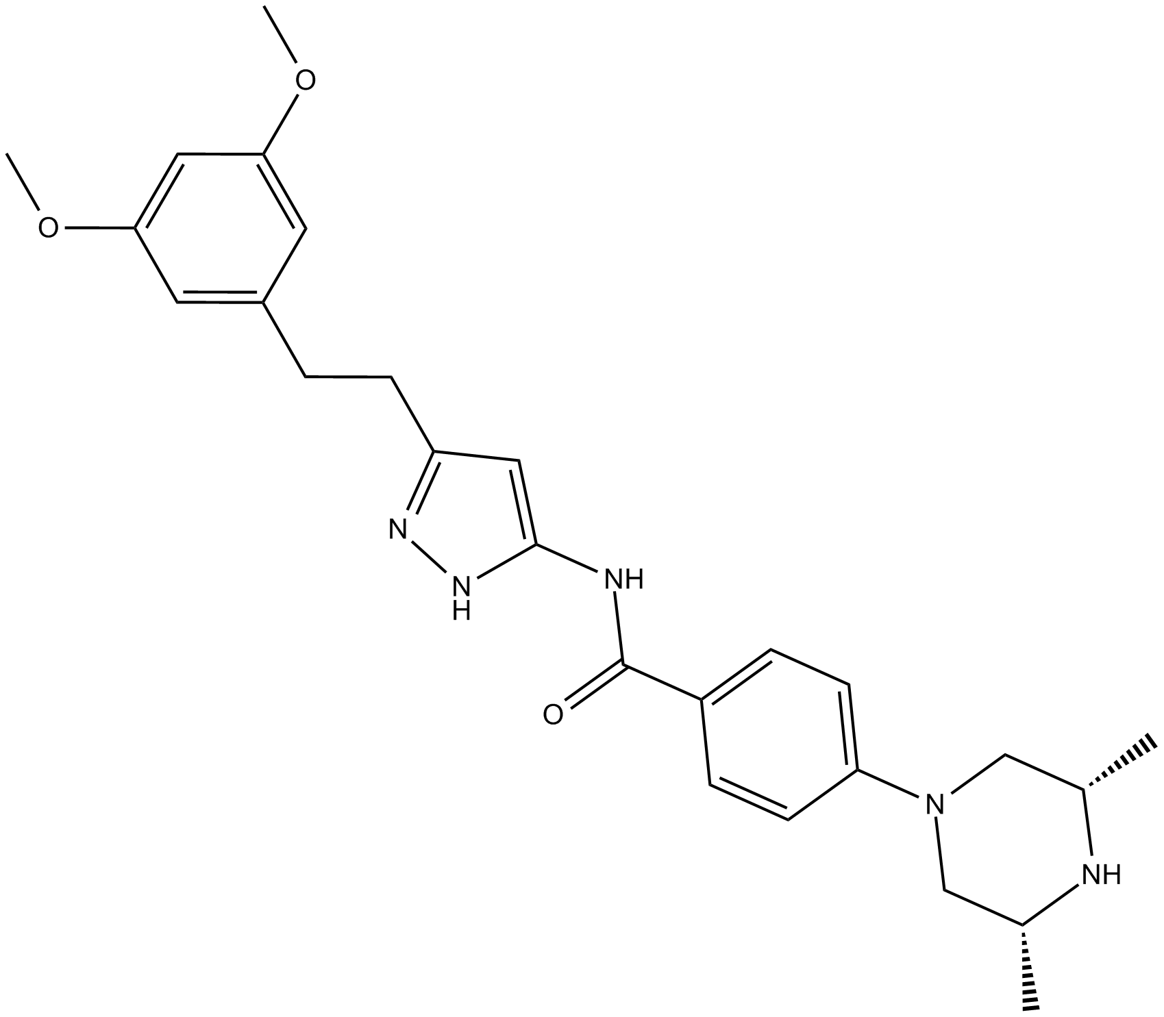 Chemical NameN-[5-[2-(3,5-dimethoxyphenyl)ethyl]-1H-pyrazol-3-yl]-4-[(3R,5S)-3,5-dimethylpiperazin-1-yl]benzamide