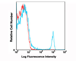 Flow cytometric analysis of C57Bl/6 mouse bone marrow cells using Cd8a monoclonal antibody, clone 2.43 (PerCP/Cy5.5) (Cat # MAB12214) compared to a relevant isotype control in red. - Gene Info — Cd8a