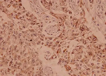 Immunohistochemistry (IHC) analyzes of Claudin-5 pAb in paraffin-embedded human breast carcinoma tissue at 1:100.