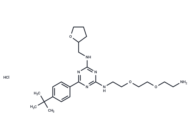 | Smiles | Cl.N=1C(=NC(=NC1NCC2OCCC2)C=3C=CC(=CC3)C(C)(C)C)NCCOCCOCCN |