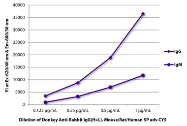 ELISA analysis of rabbit IgG and IgM protein using serial diluted GTX04551-24 Donkey anti-Rabbit IgG, pre-adsorbed (Cy5).