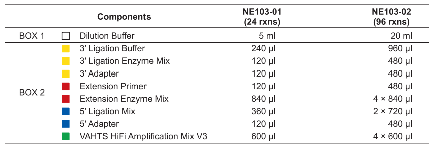 EpiArt DNA Methylation Library Kit for Illumina V3 for Illumina is a methyl-seq DNA library preparation kit that was specifically developed for the Illumina high-throughput sequencing platform. Based on high-efficiency single strand ligation technology, this kit can convert 10 pg - 250 ng of converted DNA into a sequencing library. It is compatible with DNA samples as short as 40 bp. The optimized library preparation process enables the library preparation to be completed within 2 h, and the manual operation duration is less than 30 min. It is suitable for automatic library preparation and compatible with the capture process. All the reagents in the kit have undergone rigorous quality control and function testing to ensure the optimal stability and repeatability of library preparation.