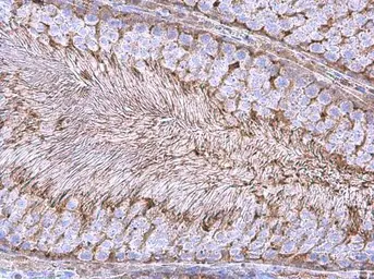 GAPDH antibody [GT239] (HRP) detects GAPDH antibody protein at cytoplasm in rat testis by immunohistochemical analysis. Sample: Paraffin-embedded rat testis. GAPDH antibody [GT239] (HRP) (GTX627408-01) diluted at 1:200.