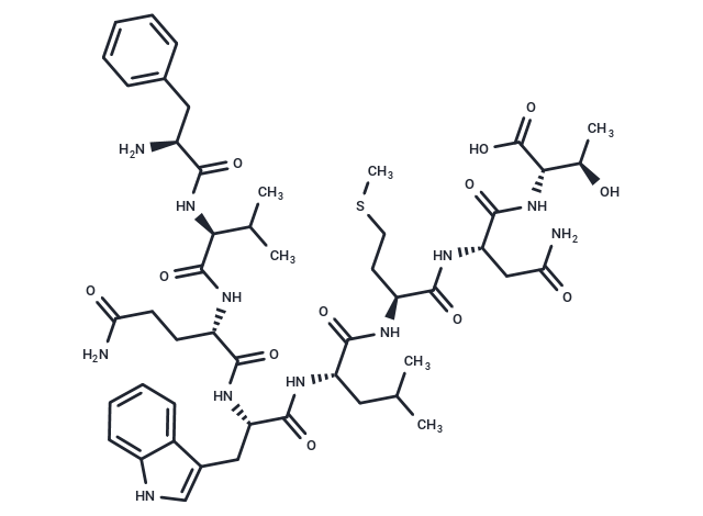 | Smiles | C([C@H](NC([C@@H](NC([C@@H](NC([C@H](CC1=CC=CC=C1)N)=O)C(C)C)=O)CCC(N)=O)=O)C(N[C@H](C(N[C@H](C(N[C@H](C(N[C@@H]([C@@H](C)O)C(O)=O)=O)CC(N)=O)=O)CCSC)=O)CC(C)C)=O)C=2C=3C(NC2)=CC=CC3 |