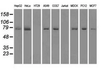 WB analysis of various cell lines using GTX84507 Mig-2 antibody [9E4].