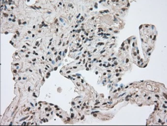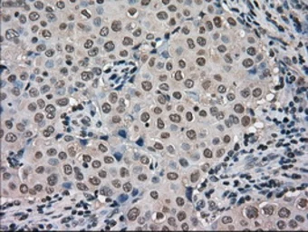 IHC-P analysis of human lung carcinoma tissue using GTX84507 Mig-2 antibody [9E4].