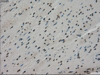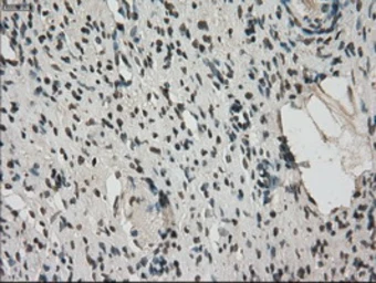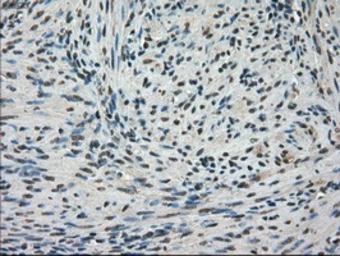 IHC-P analysis of human endometrium tissue using GTX84507 Mig-2 antibody [9E4].