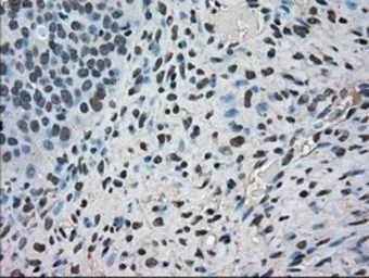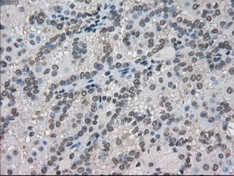 IHC-P analysis of human kidney carcinoma tissue using GTX84507 Mig-2 antibody [9E4].