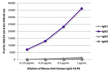 ELISA analysis of purified human immunoglobulins using serially diluted GTX04181-08 Mouse Anti-Human IgG2 (Fd) antibody [HP6014] (PE).
