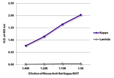 ELISA analysis of purified rat immunoglobulins using serially diluted GTX04145-02 Mouse Anti-Rat kappa light chain antibody [K4F5] (Biotin) followed by Streptavdin (HRP).
