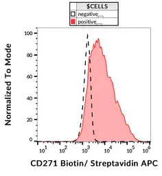 Anti-p75 NGF Receptor / CD271 antibody [NGFR5] (Biotin) used in Flow cytometry (FCM). GTX00556-02