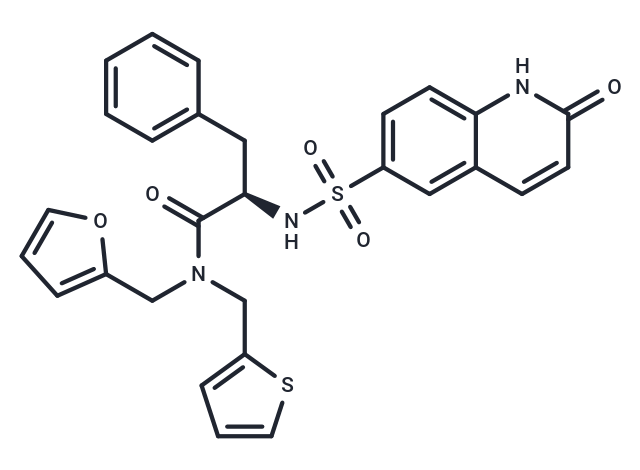 | Smiles | [C@@H](C(N(CC1=CC=CO1)CC2=CC=CS2)=O)(NS(=O)(=O)C=3C=C4C(=CC3)NC(=O)C=C4)CC5=CC=CC=C5 |