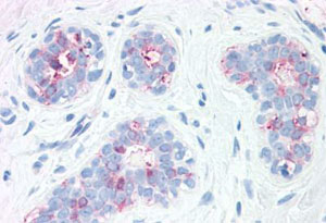 Immunohistochemistry (Formalin/PFA-fixed paraffin-embedded sections) of human breast with SYNGR2 polyclonal antibody (Cat # PAB28182). Immunohistochemistry of formalin-fixed, paraffin-embedded tissue after heat-induced antigen retrieval. - Gene Info — SYNGR2