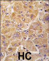 Formalin-fixed and paraffin-embedded human hepatocellular carcinoma reacted with ALDH1A1 polyclonal antibody (Cat # PAB3123) , which was peroxidase-conjugated to the secondary antibody, followed by DAB staining. This data demonstrates the use of this antibody for immunohistochemistry; clinical relevance has not been evaluated.Immunofluorescence