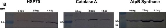 | Application examples: | Reactant: Oryza sativa (Asian rice) Application: Western Blotting Pudmed ID: 27124767 Journal: PLoS One Figure Number: 7A Published Date: 2016-04-29 First Author: Yin, G., Whelan, J., et al. Impact Factor: 2.942 Open PublicationWestern blot analysis of antioxidant enzymes in purified mitochondria from 0 d, 3 d, and 4 d aged seeds.Total 10 ?g protein was separated by SDS gel electrophoresis and blotted to supported polyvinylidene difluoride, then probed with antibodies against catalase (CAT), glutathione reductase (GR) and manganese superoxide dismutase (MnSOD). Reactant: Plant Application: Western Blotting Pudmed ID: 28389868 Journal: Planta Figure Number: 6A Published Date: 2017-07-01 First Author: Dauphinee, A. N., Fletcher, J. I., et al. Impact Factor: 3.95 Open PublicationDetection of superoxide dismutase 1 (SOD1) and catalase (CAT) using western blotting for the control (C), antioxidant (AO; 400 µg/ml ascorbic acid and 200 µg/ml cysteine), 1 mM H2O2 reactive oxygen species (ROS), and AO + ROS treatment groups. Immunoprobing for SOD1 and CAT (a). SOD1 mean protein band intensities for window stage (b) and mature leaves (c). CAT mean protein band intensities for window stage (d) and mature leaves (e). One-way ANOVA, Dunnett’s multiple comparison test, **P < 0.01; *P < 0.05 ns, non-significant; n ? 4. Error bars represent standard error Reactant: Arabidopsis thaliana (Thale cress) Application: Western Blotting Pudmed ID: 28391398 Journal: Plant Mol Biol Figure Number: 3C Published Date: 2017-05-01 First Author: Bi, C., Ma, Y., et al. Impact Factor: 3.808 Open PublicationMolecular and biochemical characterizations of the catalase mutants. a Structures of the CAT1, CAT2 and CAT3 genes are shown with the T-DNA insertion sites in cat1-1 (SAIL_525_C10), cat1-3 (SALK_208924), cat2-2 (SALK_057998), cat2-3 (SALK_144919), cat3-1 (SALK_092911) and cat3-2 (SALK_088601). Exons are indicated by black blocks, introns by solid lines and untranslated regions by grey broken lines. The black arrowhead indicates the orientation of the T-DNA insertion. b Quantitative RT-PCR analysis of CAT gene expressions in wild-type and catalase mutants is shown. Each value for real-time PCR is the mean?±?SE of three independent experiments. c Protein gel blot analysis was performed using anti-catalase serum and total proteins were extracted from seeds grown under 16-h light/8-h dark conditions for 24 h after stratification. Protein extracts were stained with Ponceau S as a loading control. The protein gel blot assay was repeated independently three times. d The effect of 3-AT on seed germination in catalase mutants. Germination rates were recorded for the wild-type, CAT homozygous mutants grown under light conditions (16 h light/8 h dark) for 60 h after stratification on MS medium supplemented with 0, 5mM 3-AT. Each value is the mean?±?SE of three independent biological experiments, and different letters indicate significant differences at P? Reactant: Arabidopsis thaliana (Thale cress) Application: Western Blotting Pudmed ID: 28391398 Journal: Plant Mol Biol Figure Number: 4D Published Date: 2017-05-01 First Author: Bi, C., Ma, Y., et al. Impact Factor: 3.808 Open PublicationExpression analysis of CAT members in the seeds of Col-0, ABI5OE-Myc and abi5-1. The seeds of Col-0, ABI5OE-Myc and abi5-1 were grown under 16-h light/8-h dark conditions for 24 h after stratification on MS medium supplemented with 0 or 5mM 3-AT. a–c are quantitative RT-PCR analysis of CAT1 (A), CAT2 (B) and CAT3 (C), respectively. Each value is the mean?±?SE of three independent experiments. d Protein gel blot analysis of the expression of CAT in the seeds of Col-0, ABI5OE-Myc and abi5-1. Protein extracts were stained with the Ponceau S as a loading control. The assay was independently repeated three times Reactant: Moniliophthora perniciosa (Witches' broom disease) Application: Western Blotting Pudmed ID: 28818052 Journal: BMC Microbiol Figure Number: 4A Published Date: 2017-08-17 First Author: Mares, J. H., Gramacho, K. P., et al. Impact Factor: 3.437 Open PublicationAccumulation of BiP, Catalase, and ATP synthase (beta chain) by western blot and analysis of spots. a Image of a nitrocellulose membrane hybridized with Anti-BiP, Anti-Catalase, and Anti-ATP synthase (beta chain) of Arabidopsis (Normalization, see Additional file 6: Figure S4). b Relative accumulation determined from images of the nitrocellulose membrane, using the Gel Quant. Net 1.8.0 software. c Relative quantification of each spot corresponding to proteins analyzed by western blot. The average values of the each spot’s percentage volume in each gel replicate was used for graph construction Reactant: Arabidopsis thaliana (Thale cress) Application: Western Blotting Pudmed ID: 30609769 Journal: Int J Mol Sci Figure Number: 3B Published Date: 2019-01-02 First Author: Szyma?ska, K. P., Polkowska-Kowalczyk, L., et al. Impact Factor: 5.542 Open PublicationSnRK2.4 and SnRK2.10 modulate catalase (CAT) on multiple levels during response to salt stress. Wild type and snrk2 mutants’ seedlings were subjected to treatment with 150 mM NaCl for times indicated. CAT1 expression was determined by RT-qPCR (A), total catalase protein was determined by immunoblot analysis (B), and total catalase activity assay was performed (C); error bars represent SD; stars represent statistically significant differences in comparison with the wt plants (Student t-test) where * p < 0.05; ** p < 0.001; *** p < 0.0001. After exposure, membranes were stripped and reused for glyceraldehyde 3-phosphate dehydrogenase (GAPDH) detection as a loading control. At least two independent biological replicates of the experiment were performed, each with four samples per data point. Results of one representative experiment are shown. Reactant: Arabidopsis thaliana (Thale cress) Application: Western Blotting Pudmed ID: 33445496 Journal: Plants (Basel) Figure Number: 4C,D Published Date: 202