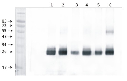 | Recommended dilution: | 1: 10 000 (CN-PAGE), 1: 5000 - 1 : 50 000 (WB) |