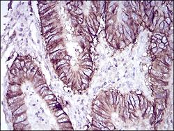 Immunohistochemical staining of paraffin-embedded rectal cancer tissues with CDH17 monoclonal antibody.