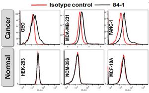 Application:Flow Cyt, IF, Microbeads, Spiking assay, Human, Mouse, Cancers (breast, bladder, colorectal, liver), cancer cell lines (breast, liver, colon, brain, bladder, pancreas), normal cell lines (HEK-293, NCM-356, MCF-10A) cell lines.