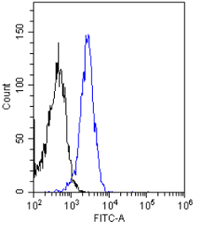 Flow cytometric analysis of HeLa cells with EGFR recombinant monoclonal antibody, clone 528 (Cat # RAB03426).