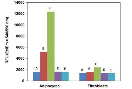 Measurement of 2DG uptake in differentiated 3T3-L1 adipocytes and 3T3-L1 fibroblasts.