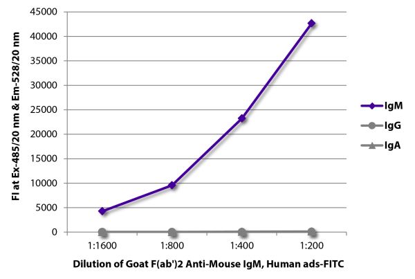 Goat F(ab')2 Anti-Mouse IgM, Human ads-FITC