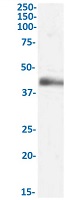 Western Blot analysis the LPS-treated human PBM lysates (35ug protein in RIPA buffer) were resolved on a 15% SDS PAGE gel and blots were probed with the chimeric r version of RAB03637 at 2 ug/mL before detection using an anti-rondary antibody. Protein was detected by chemiluminescence.