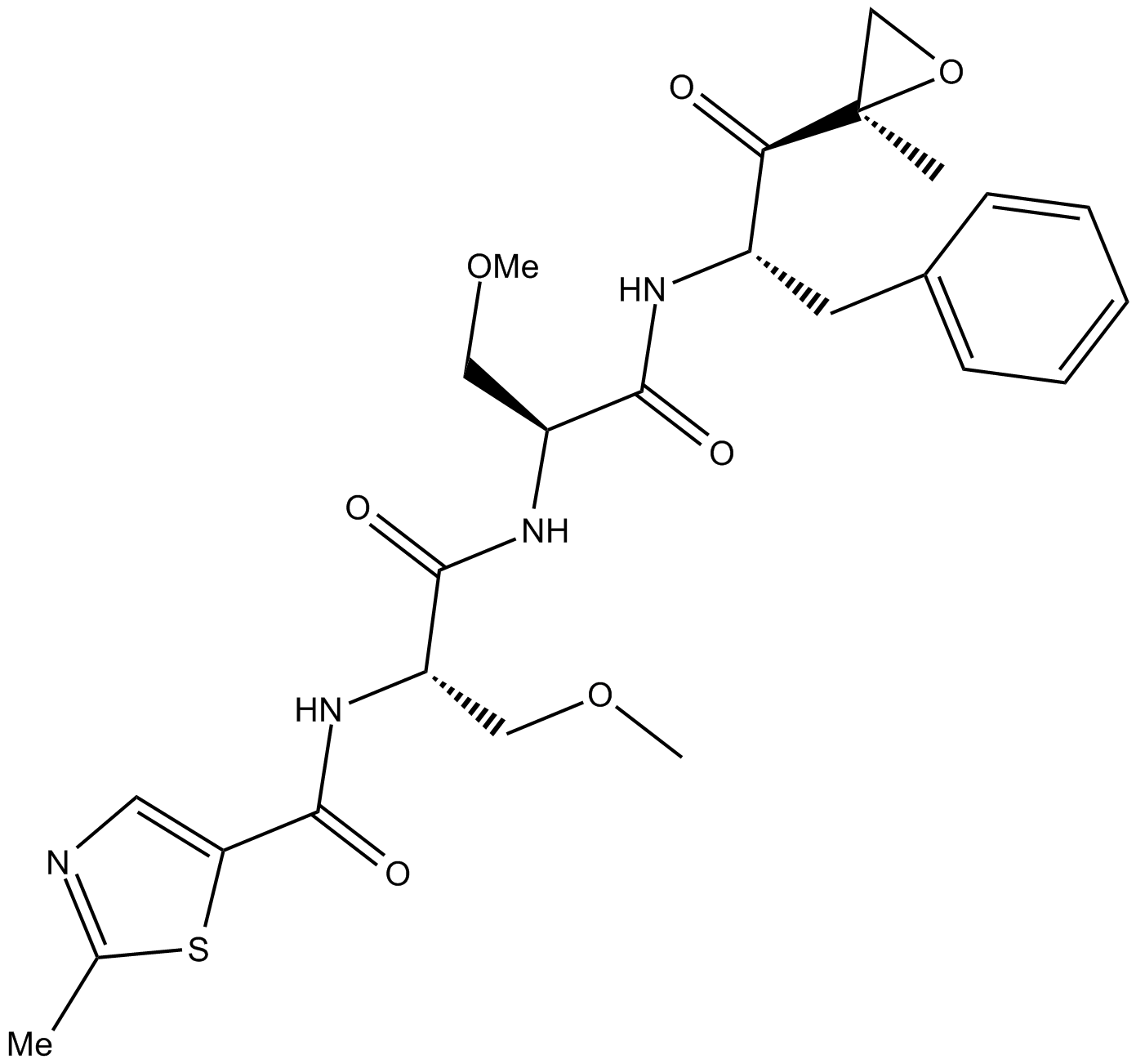 | Chemical Name | N-[(2S)-3-methoxy-1-[[(2S)-3-methoxy-1-[[(2S)-1-[(2R)-2-methyloxiran-2-yl]-1-oxo-3-phenylpropan-2-yl]amino]-1-oxopropan-2-yl]amino]-1-oxopropan-2-yl]-2-methyl-1,3-thiazole-5-carboxamide |