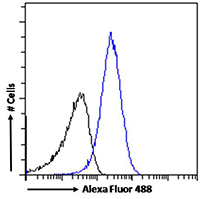 PRPF31 polyclonal antibody (Cat # PAB7154) Flow cytometric analysis of paraformaldehyde fixed HEK293 cells (blue line), permeabilized with 0.5% Triton. Primary incubation 1hr (10 ug/mL) followed by Alexa Fluor 488 secondary antibody (1 ug/mL). IgG control: Unimmunized goat IgG (black line) followed by Alexa Fluor 488 secondary antibody.Enzyme-linked Immunoabsorbent Assay
