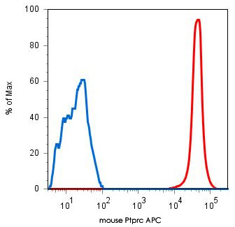 Surface staining of mouse blood lymphocytes with Ptprc monoclonal antibody, clone EM-05 (APC) (Cat # MAB5118). - Gene Info — Ptprc
