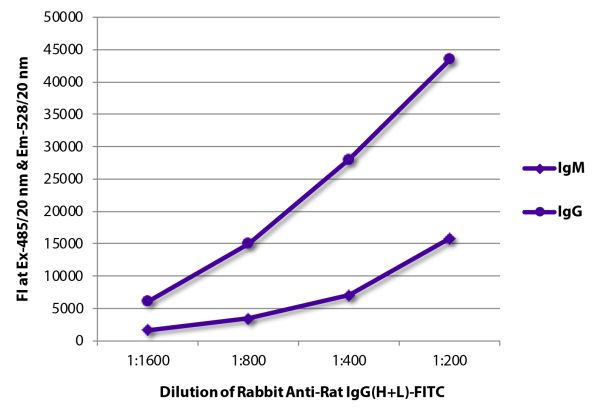 | Specificity | Reacts with the heavy and light chains of rat IgG and the light chains of rat IgM |