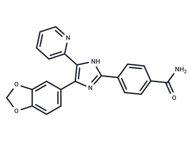 SmilesNC(=O)c1ccc(cc1)-c1nc(c([nH]1)-c1ccccn1)-c1ccc2OCOc2c1