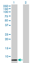 Lane 1: SCGB1A1 transfected lysate(10 KDa).