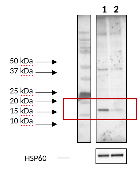 Expected | apparent MW: 22 | 17 kDa (without mitochondrial target sequence MTS)