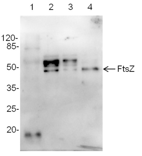 | Immunogen: | Whole cyanobacterial (Anabaena PCC 7120) FtsZ protein, UniProt: Q3MC27 overexpressed in E.coli. |