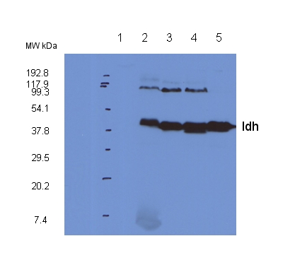 | Additional information: | Peptide used to elicit this antibody is not conserved in NADPH dependent anzymes, partially conserved across eukaryotic Idh subunits, Some conservation across bacterial which contain the NAD-dependent form of Idh (as opposed to the NADP-dependent form) |