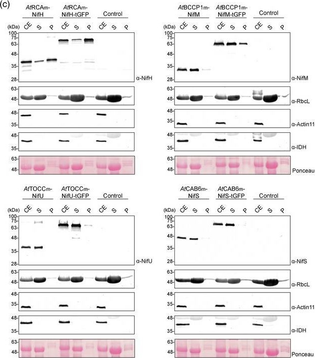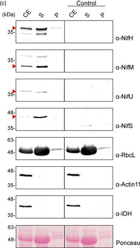 | Application examples: | Reactant: Oryza sativa (Asian rice) Application: Western Blotting Pudmed ID: 27124767 Journal: PLoS One Figure Number: 6A Published Date: 2016-04-29 First Author: Yin, G., Whelan, J., et al. Impact Factor: 2.942 Open PublicationAbundance of a variety of known mitochondrial proteins by the immunoblot analysis of mitochondria isolated from 0 d, 3 d, and 4 d aged rice embryos after 48 h imbibition.Total 10 ?g protein was separated by SDS gel electrophoresis and blotted to supported polyvinylidene difluoride, then probed with antibodies against beta subunit of ATP synthase (AtpB), serine hydroxymethyltransferase (SHMT), isocitrate dehydrogenase (IDH), voltage dependent anion channel 1 (VDAC1) and cytochrome c (Cyt c). Reactant: Nicotiana tabacum (Common tobacco) Application: Western Blotting Pudmed ID: 31985876 Journal: Plant Biotechnol J Figure Number: 3C Published Date: 2020-09-01 First Author: Eseverri, Á., López-Torrejón, G., et al. Impact Factor: 8.66 Open PublicationLocalization of stroma?targeted Nif proteins. (a) Schematic representation of the constructs used in N. benthamiana?transient expression assays leading to Nif localization. (b) Confocal microscopy images of Nif proteins fused to tGFP. N.C. corresponds to ‘negative control’, a non?agroinfiltrated leaf. The three columns show the individual signals for tGFP (green, on the left) and chlorophyll autofluorescence (red, in the centre). On the right, overlap of both signals (merge). (c) Chloroplast purification assays. Total proteins extract prior to chloroplast purification (CE). Intact chloroplasts were isolated and then broken to separate the soluble (S) and membrane?associated (P) fractions. Control refers to N. benthamiana plants agroinfiltrated with agrobacterium transformed with an empty vector. Proteins were resolved by SDS?PAGE and detected by Western blot. Expected sizes are Twin?Strep NifH: 35.3 kDa, NifM: 32.3 kDa, NifU: 34.4 kDa, NifS: 44.3 kDa (27 kDa more in the case of tGFP fusions), RbcL: 52.7 kDa, Actin?11: 41.6 kDa and IDH: 39 kDa. Note that the IDH blot was re?probed after striping anti?RuBisco and some signal remains (upper band). Reactant: Nicotiana tabacum (Common tobacco) Application: Western Blotting Pudmed ID: 31985876 Journal: Plant Biotechnol J Figure Number: 5C Published Date: 2020-09-01 First Author: Eseverri, Á., López-Torrejón, G., et al. Impact Factor: 8.66 Open PublicationPurification of NifH from chloroplasts of N. benthamiana co?expressing nifH, nifM, nifU and nifS. (a) Schematic representation of the multigenic construct used in N. benthamiana?transient expression assays leading to NifH purification. (b) Western blot analysis of the agroinfiltrated tissue using antibodies targeting Strep?tagged NifH, NifM, NifU and NifS as indicated. Expected sizes are Twin?Strep NifH: 35.3 kDa, NifM: 32.3 kDa, NifU: 34.4 kDa and NifS: 44.3 kDa. (c) Chloroplast purification assays. Total proteins extract prior to chloroplast purification (CE). Intact chloroplasts were isolated and then broken to separate the soluble (S) and membrane?associated (P) fractions. Control refers to N. benthamiana plants agroinfiltrated with agrobacterium transformed with an empty vector. Proteins were resolved by SDS?PAGE and detected by Western blot. Expected sizes are RbcL: 52.7 kDa; Actin?11: 41.6 kDa and IDH: 39 kDa. The triangles in red mark the mature form of the protein. (d) Coomassie staining illustrating the Strep?Tactin purification procedure of A. vinelandii NifH expressed in leaves of N. benthamiana. CFE, cell?free extract (soluble fraction following centrifugation and filtering of disrupted leaf tissue); FT, Strep?Tactin flow?through fraction; W, wash fraction; E, biotin?eluted fraction; Ec, concentrated eluate. (e–f) Western blot analysis of the Strep?Tactin purification procedure. Antibodies targeting Strep?tag (e) or NifH (f) were used for visualization of the purified NifH protein. Reactant: Nicotiana tabacum (Common tobacco) Application: Western Blotting Pudmed ID: 31985876 Journal: Plant Biotechnol J Figure Number: 6B Published Date: 2020-09-01 First Author: Eseverri, Á., López-Torrejón, G., et al. Impact Factor: 8.66 Open PublicationExpression, purification and activity assays of NifU from N. benthamiana chloroplasts. (a) Schematic representation of the construct used in N. benthamiana?transient expression assays leading to NifU purification. pe35s: 35S mosaic cauliflower virus?enhanced promoter; SSU: CTP from the small subunit of RuBisCo; Tnos: nopaline synthase Agrobacterium terminator; p35s: 35S mosaic cauliflower virus promoter. (b) Purification of chloroplasts from NifU and NifS expressing cells. Total proteins extract prior to chloroplast purification (CE). Intact chloroplasts were isolated and then broken to separate the soluble (S) and membrane?associated (P) fractions. Control refers to N. benthamiana plants agroinfiltrated with agrobacterium transformed with an empty vector. Proteins were resolved by SDS?PAGE and detected by Western blot. Expected sizes are Twin?Strep NifU: 36.5 kDa, NifS: 43.7 kDa, RbcL: 52.7 kDa; Actin?11: 41.6 kDa and IDH: 39 kDa. Note that the IDH blot was re?probed after striping anti?RuBisco and some signal remains (upper band). (c) Coomassie staining illustrating the Strep?Tactin purification procedure of A. vinelandii NifU expressed in leaves of N. benthamiana. CFE, cell?free extract (soluble fraction following centrifugation and filtering of disrupted leaf tissue); FT, Strep?Tactin flow?through fraction; W, wash fraction; E, biotin?eluted fraction. (d–f) Western blot analysis of the Strep?Tactin purification procedure. Antibodies targeting Strep?tag (d) or NifU (e) were used for visualization of the purified NifU protein. Antibodies targeting NifS (f) were used to visualize NifS protein co?purifying with NifU. (g) A. vinelandii apo?NifH was activated either by in vitro [4Fe–4S] cluster reconstitution (Rc Apo?NifH) or by incubation wit