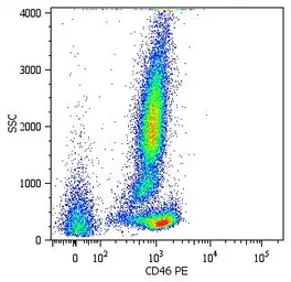 CD46 antibody [MEM-258] (PE) Cat. No. GTX78353 References 2 Cat. No. GTX78353 GTX78353 FCM Image FACS analysis of human peripheral blood using GTX78353 CD46 antibody [MEM-258] (PE). See all CD46 products
