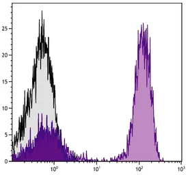 FACS analysis of human peripheral blood lymphocytes using Mouse anti-Human CD3 antibody followed by GTX03670 Goat Anti-Mouse IgG antibody (Cy5), pre-adsorbed.