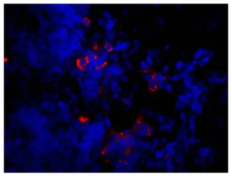IHC-Fr analysis of mouse lymph node tissue using GTX04192-25 Goat Anti-Mouse IgM (Mu chain) antibody, pre-adsorbed (TRITC).