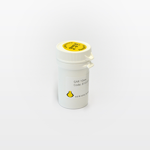 AURION Conventional Immunogold Reagents are tailored to contain 10-20 µg of specific protein/ml. The reagents are supplied in PBS with 1% Bovine Serum Albumin and 15 mM NaN3 at an OD520nm of 1.0 to warrant prolonged cluster free storage.