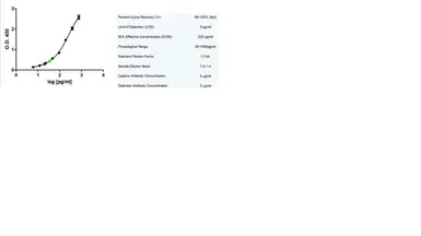 Sandwich ELISA analysis of human granzyme B using Mouse anti Human granzyme B (GTX75843) as a capture reagent and biotinylated Mouse anti Human granzyme B (GTX75842) as a detection reagent. Human plasma samples are diluted i:2 (green) and 1:4 (blue).