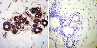 IHC-P analysis of human breast tissue using GTX25442 Hsp70 antibody [2A4].