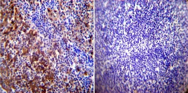 IHC-P analysis of human tonsil tissue using GTX25442 Hsp70 antibody [2A4].