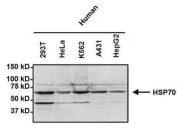 WB analysis of 50 ug of the indicated whole cell lysates using GTX25442 Hsp70 antibody [2A4].