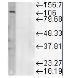 WB analysis of rat liver microsome lysates using GTX13523 LAMP1 antibody [Ly1C6].