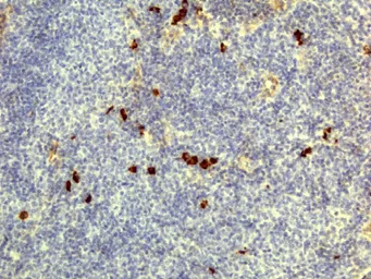 IHC analysis of human lymphoid tissue using GTX60868 Human IgD antibody [RM123].