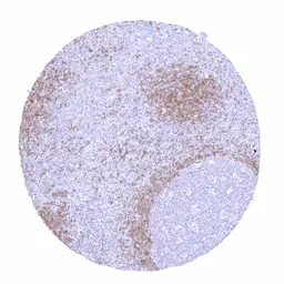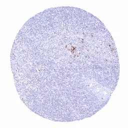 Strong human IgD staining in a fraction of B lymphocytes especially in the mantle zone.