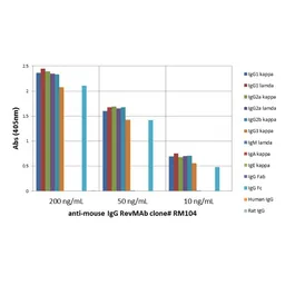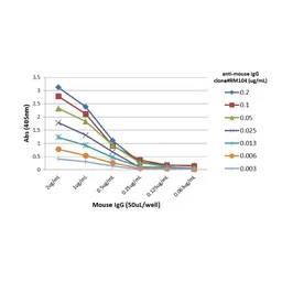 ELISA analysis of mouse immunoglobulins (50 ng/well) using GTX20295 Rabbit Anti-Mouse IgG (Fc) antibody [RM104]. No cross reactivity with IgM,IgA, IgE, human or rat IgG.