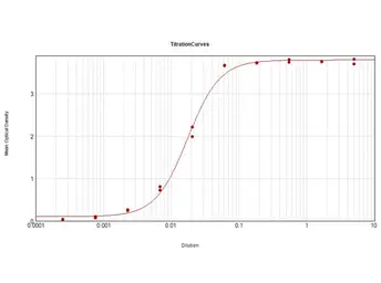 ELISA analysis of sheep IgG using serially diluted GTX27111 Rabbit Anti-Sheep IgG antibody, pre-adsorbed (HRP).